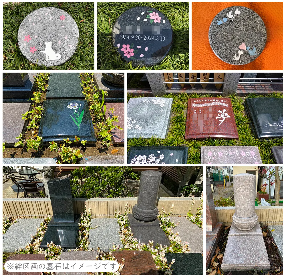 世界的にも有名なインドの高級御影石など使用し、墓石の形状は丸型、プレート型、墓石型のデザイン墓石となっております。