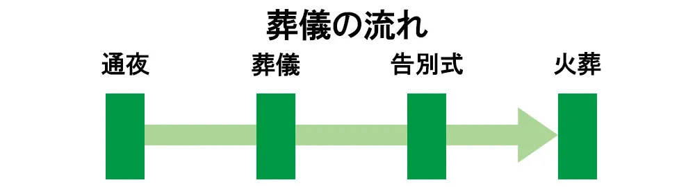 一般的には、通夜・葬儀・告別式・火葬という流れで執り行われ、遺族や親族、友人・知人が集い、故人を偲びます。