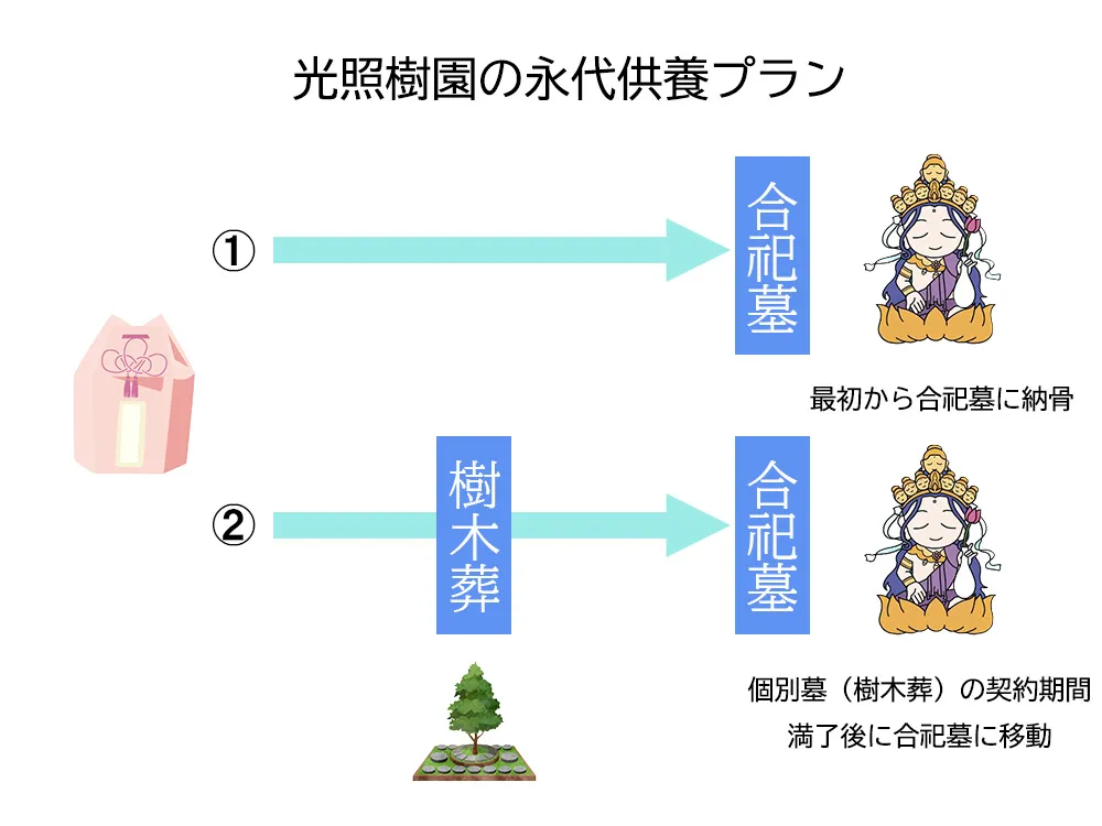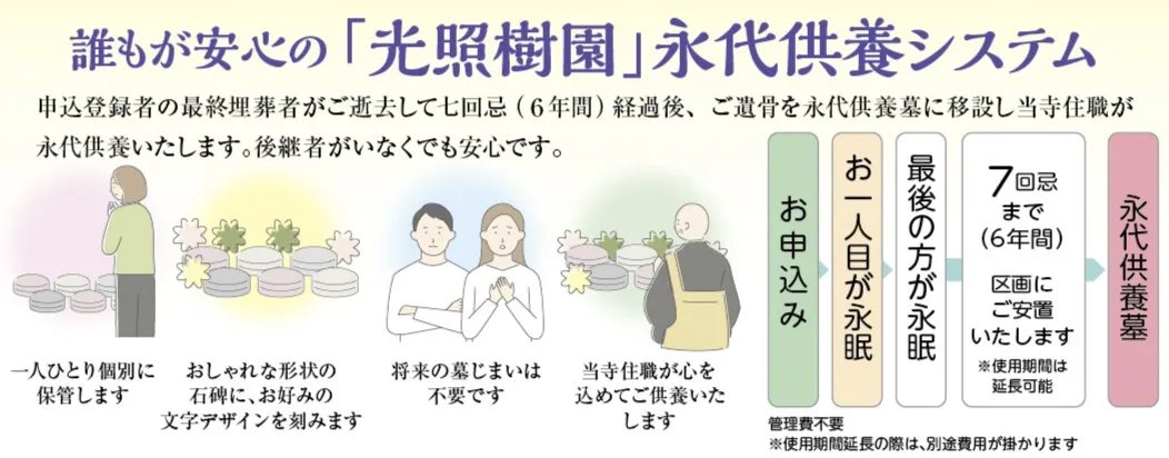 光照樹園の樹木葬は、すべて永代供養が含まれています。